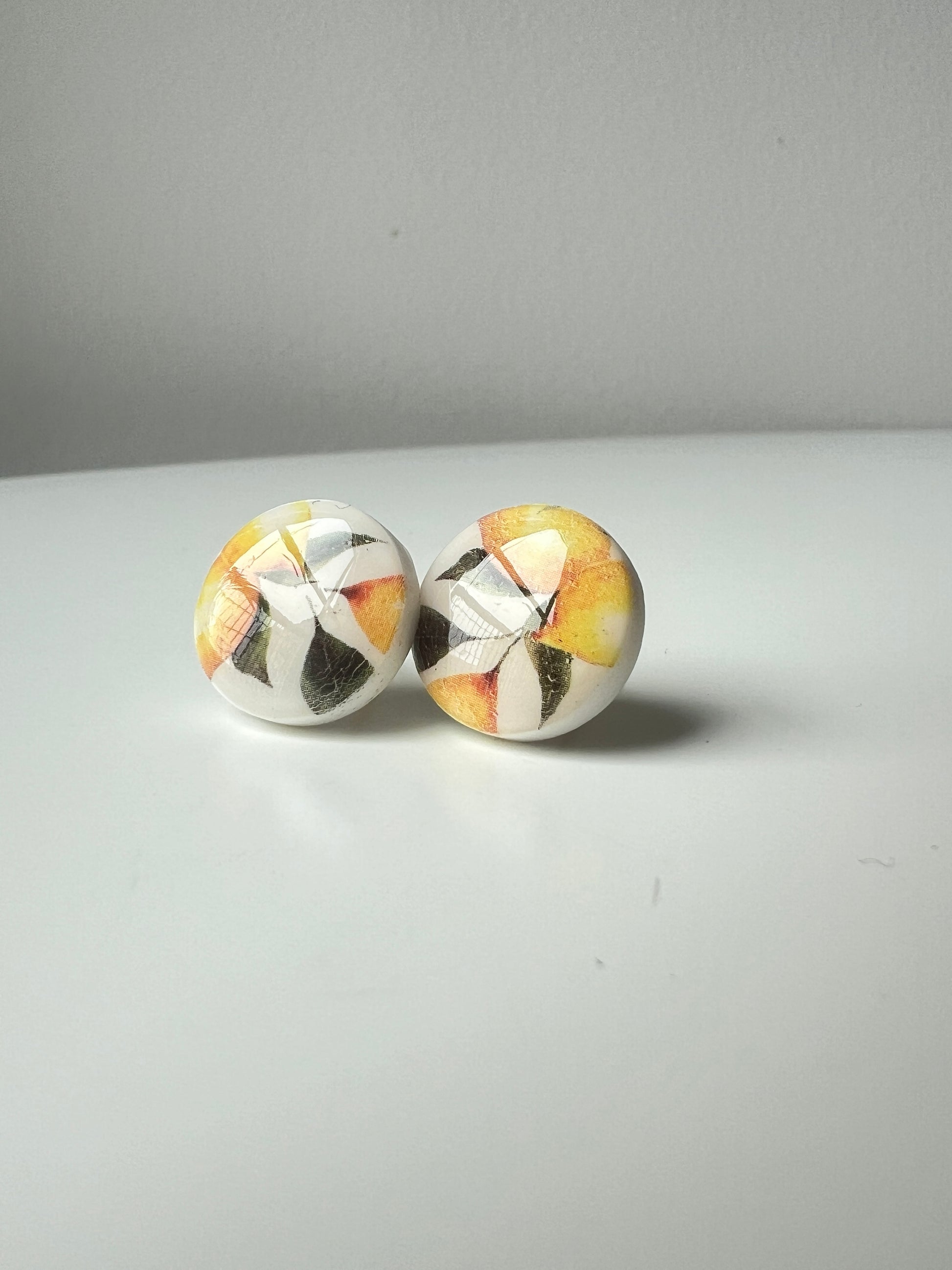Šie rankų darbo auskarai pagaminti iš aukštos kokybės polimerinio molio, todėl yra lengvi ir patvarūs. Kiekviena pora kruopščiai formuojama rankomis, todėl kiekvienas rinkinys yra unikalus.