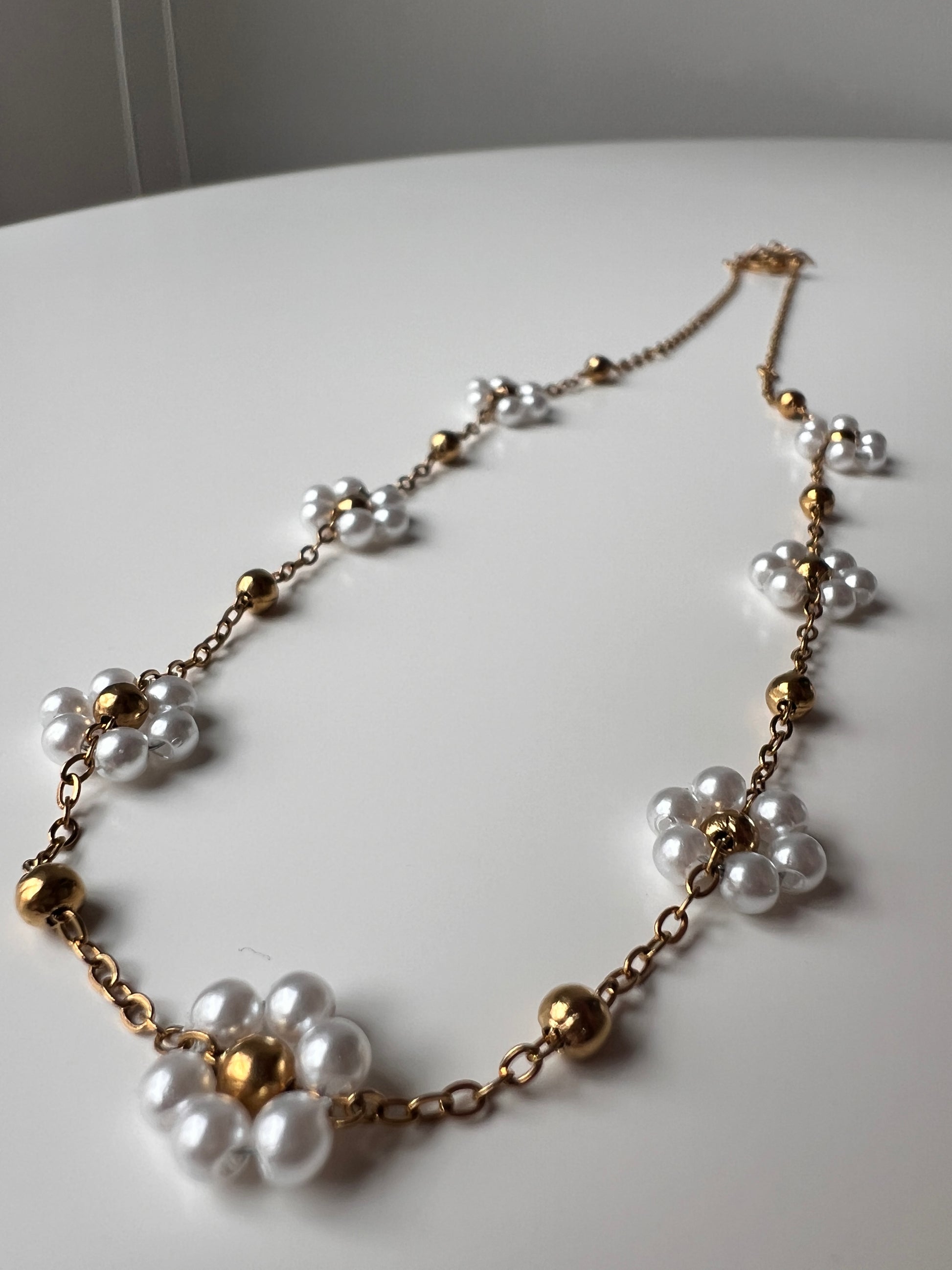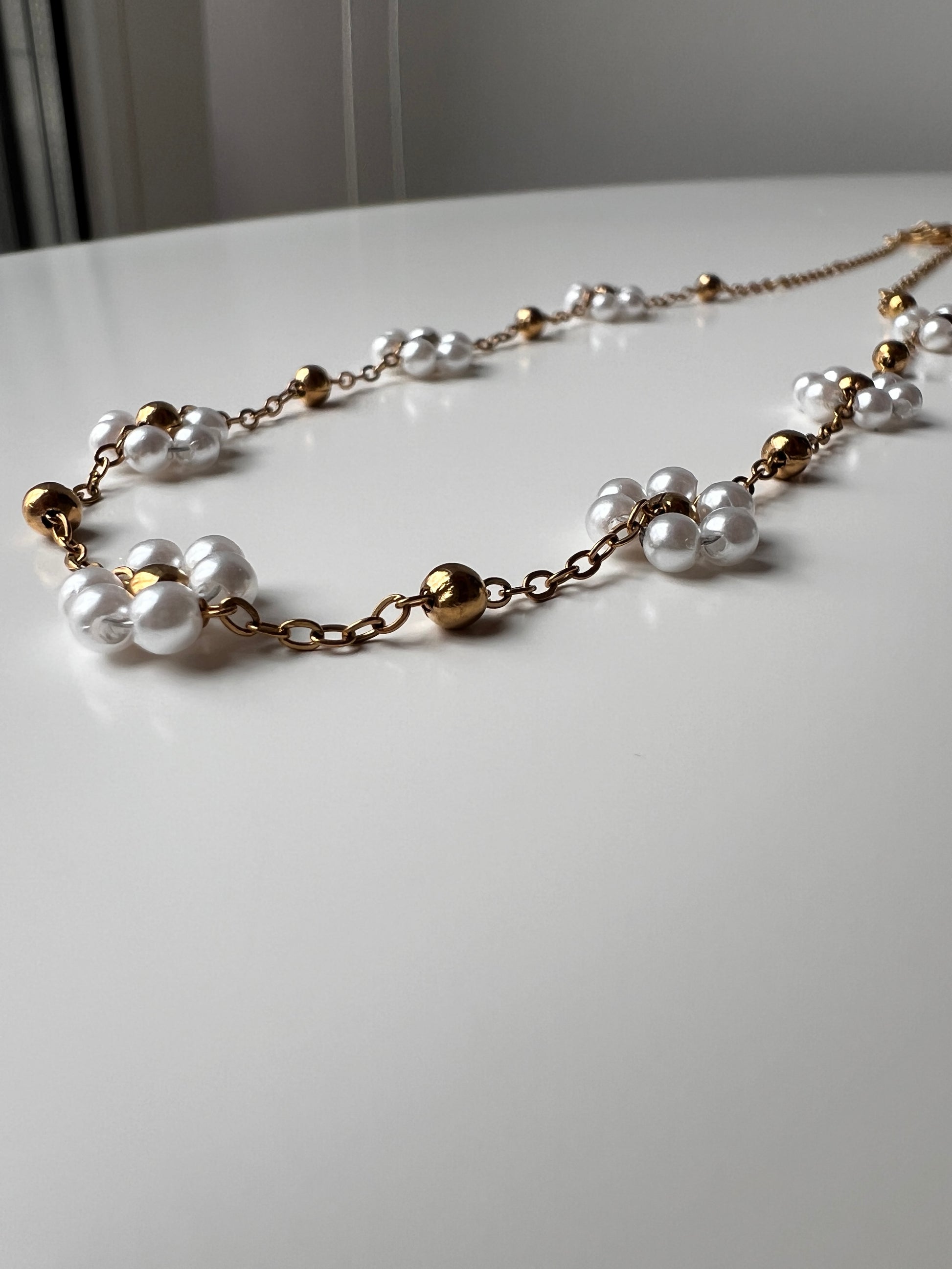 • Medžiaga: Nerūdijantis plienas (grandinėlė ir karoliukai), dirbtiniai perlai