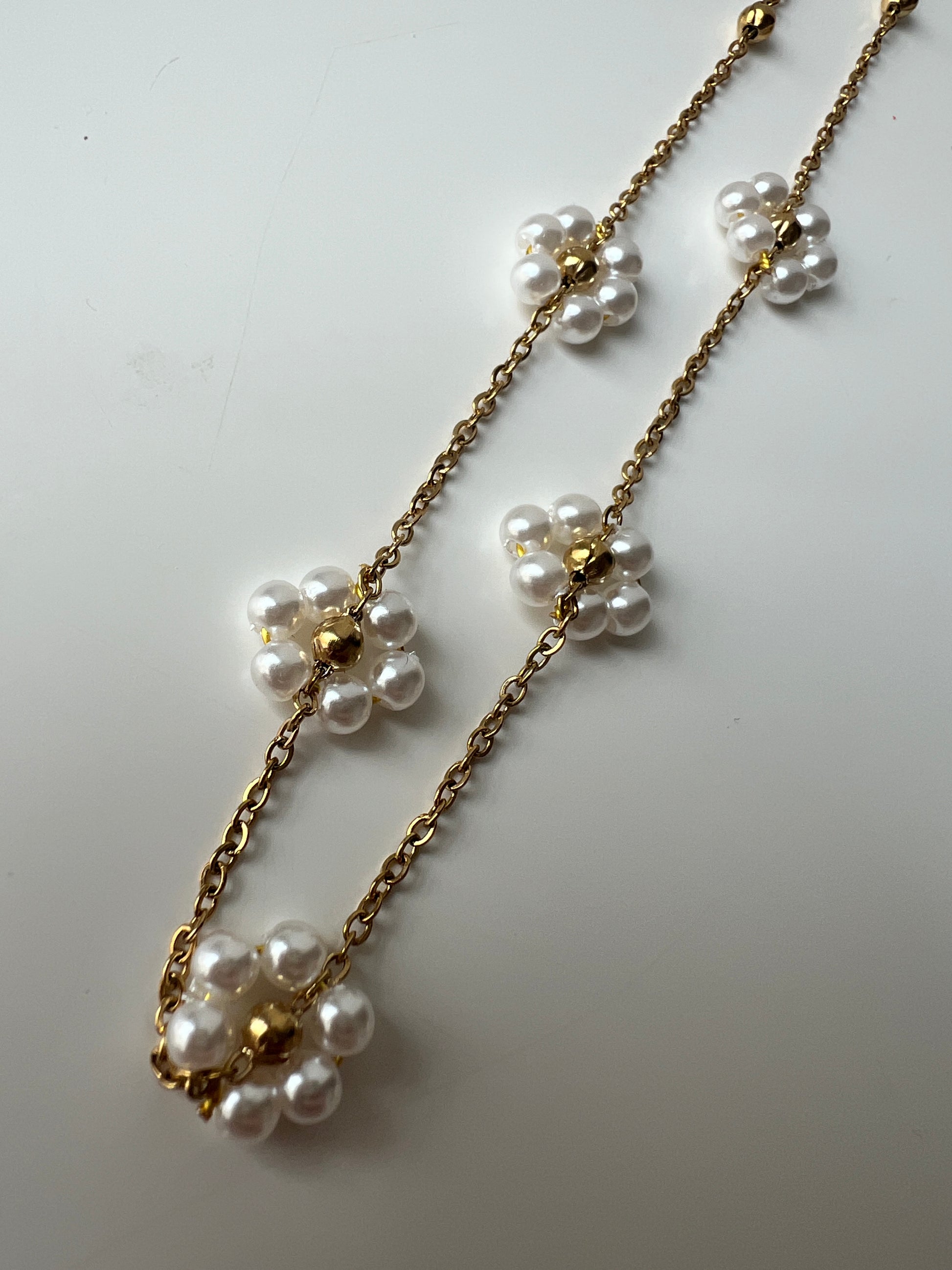 • Medžiaga: Nerūdijantis plienas (grandinėlė ir karoliukai), dirbtiniai perlai