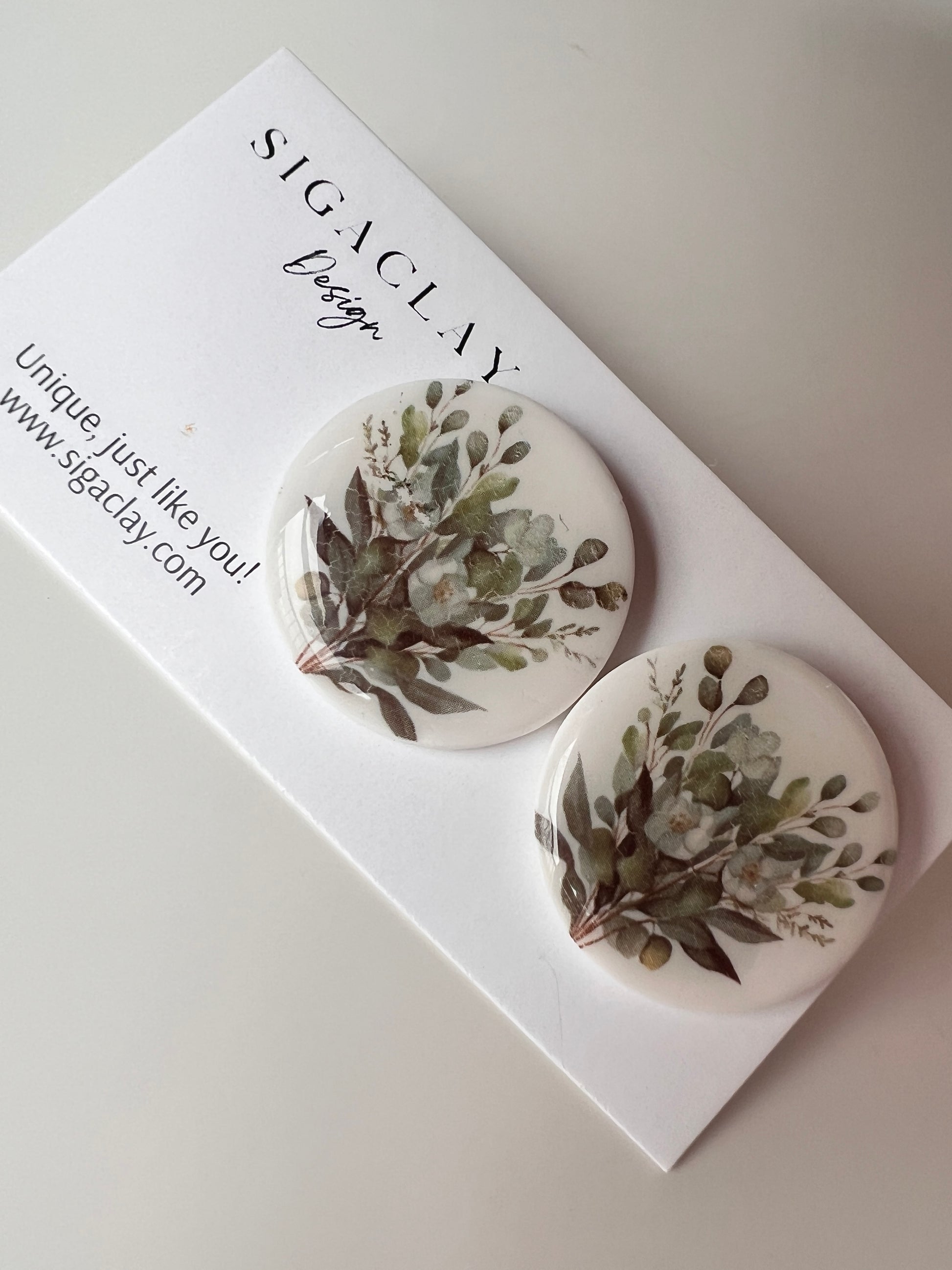 Šie rankų darbo auskarai pagaminti iš aukštos kokybės polimerinio molio, todėl yra lengvi ir patvarūs. Kiekviena pora kruopščiai formuojama rankomis, todėl kiekvienas rinkinys yra unikalus.