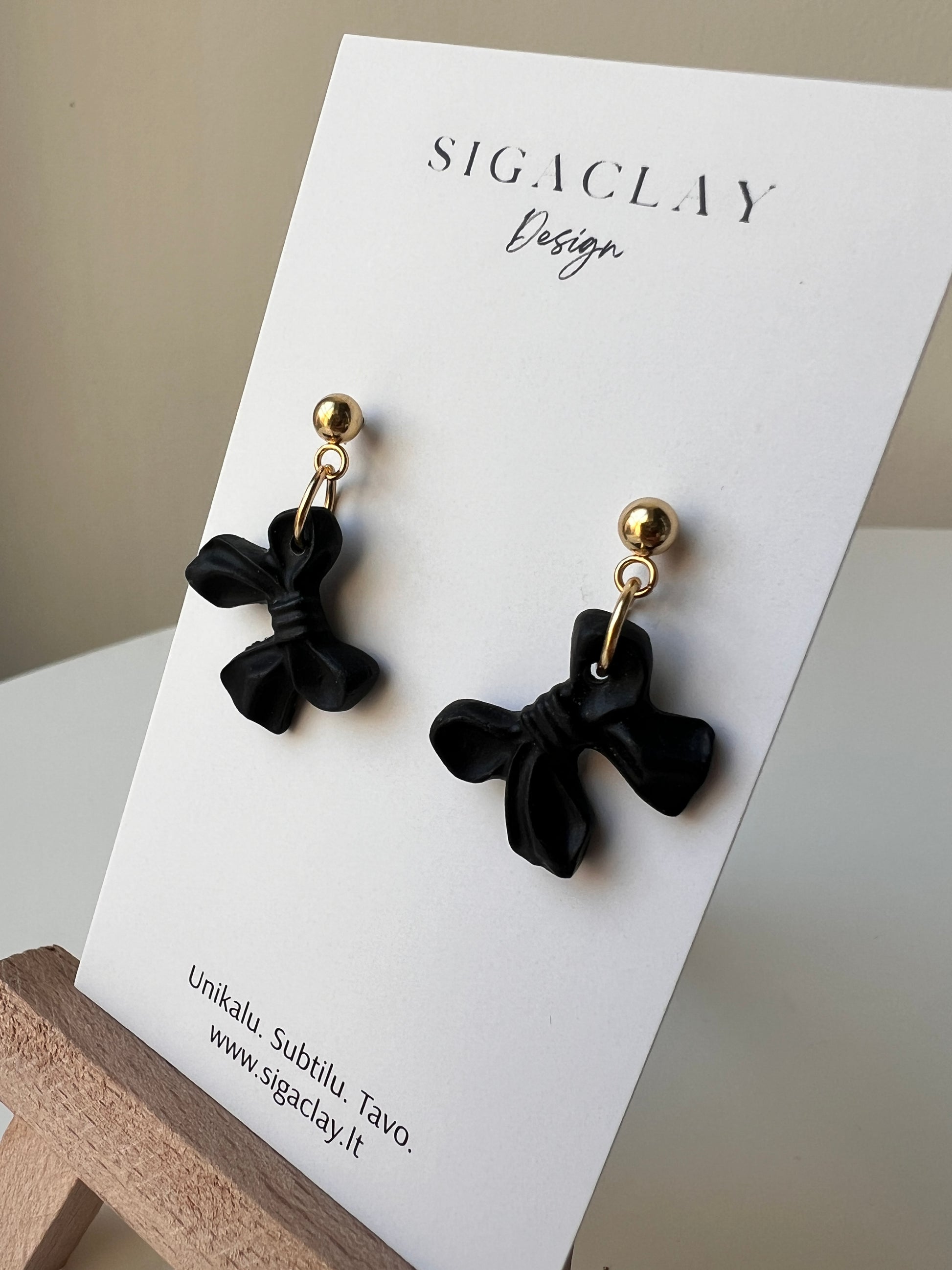 Visi „Siga Clay“ auskarai yra rankų darbo iš polimerinio molio – prašome su jais elgtis atsargiai. Nedėkite ant auskarų sunkių daiktų ir neleiskite jiems sulinkti, kad nesulūžtų. Laikykite auskarus atokiau nuo aliejų ir kvepalų.