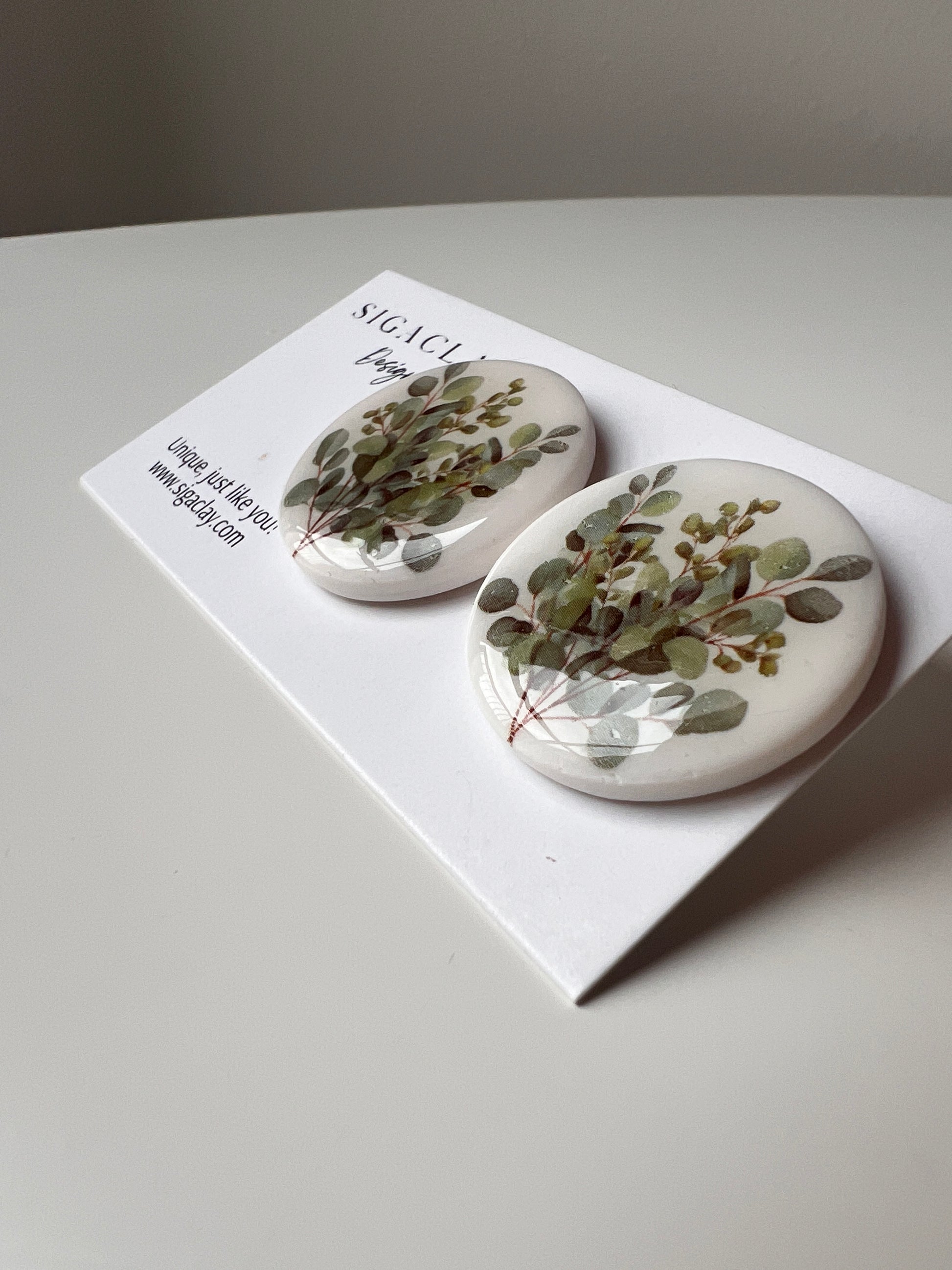 Šie rankų darbo auskarai pagaminti iš aukštos kokybės polimerinio molio, todėl yra lengvi ir patvarūs. Kiekviena pora kruopščiai formuojama rankomis, todėl kiekvienas rinkinys yra unikalus.